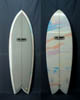 吉川共久プロのリクエストで製作されたモデル。レトロよりもロッカーが強めでレールも薄めに仕上げられています。ボトムはシングルーダブルコンケーブ。レトロでもハイパフォーマンスに動かせるツインフィン。 |